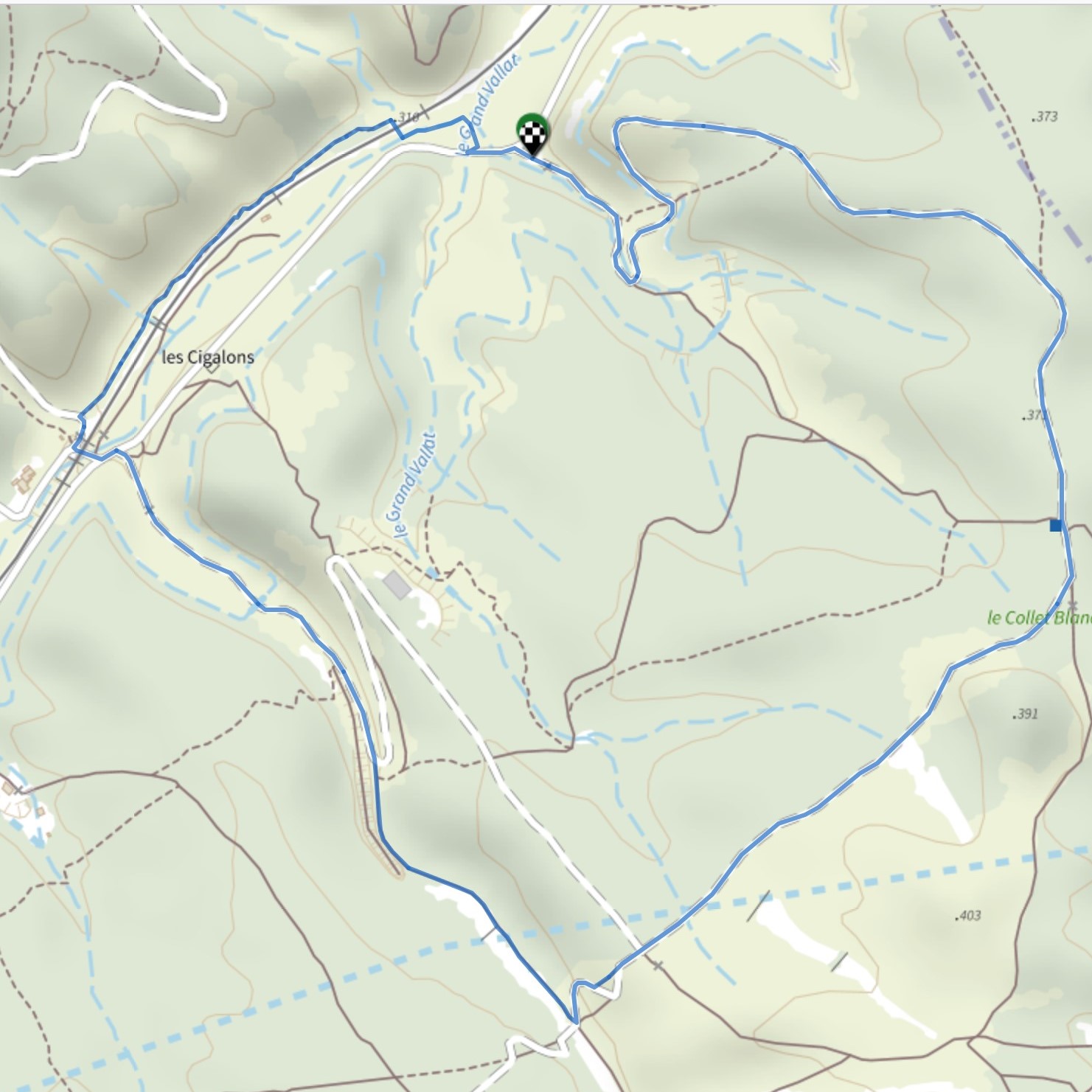 La trace est donnée ci-contre (lien) et est l'objet d'un descriptif très détaillé dans VISORANDO.