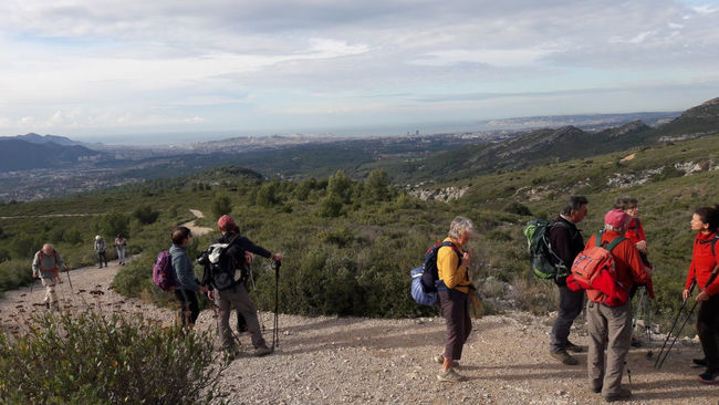 Randonnée proposée et encadrée par Jean-Claude Micaelli le 23 novembre 2021, 22 randonneurs du CAP étaient au rendez-vous. Neuf d'entre eux ont préféré réserver leurs forces pour le vallon des Piches et ont prolongé la pause pique-nique au pied de Garlaban en attendant le retour des 13 autres. Temps fort agréable avec alternance soleil nuages.