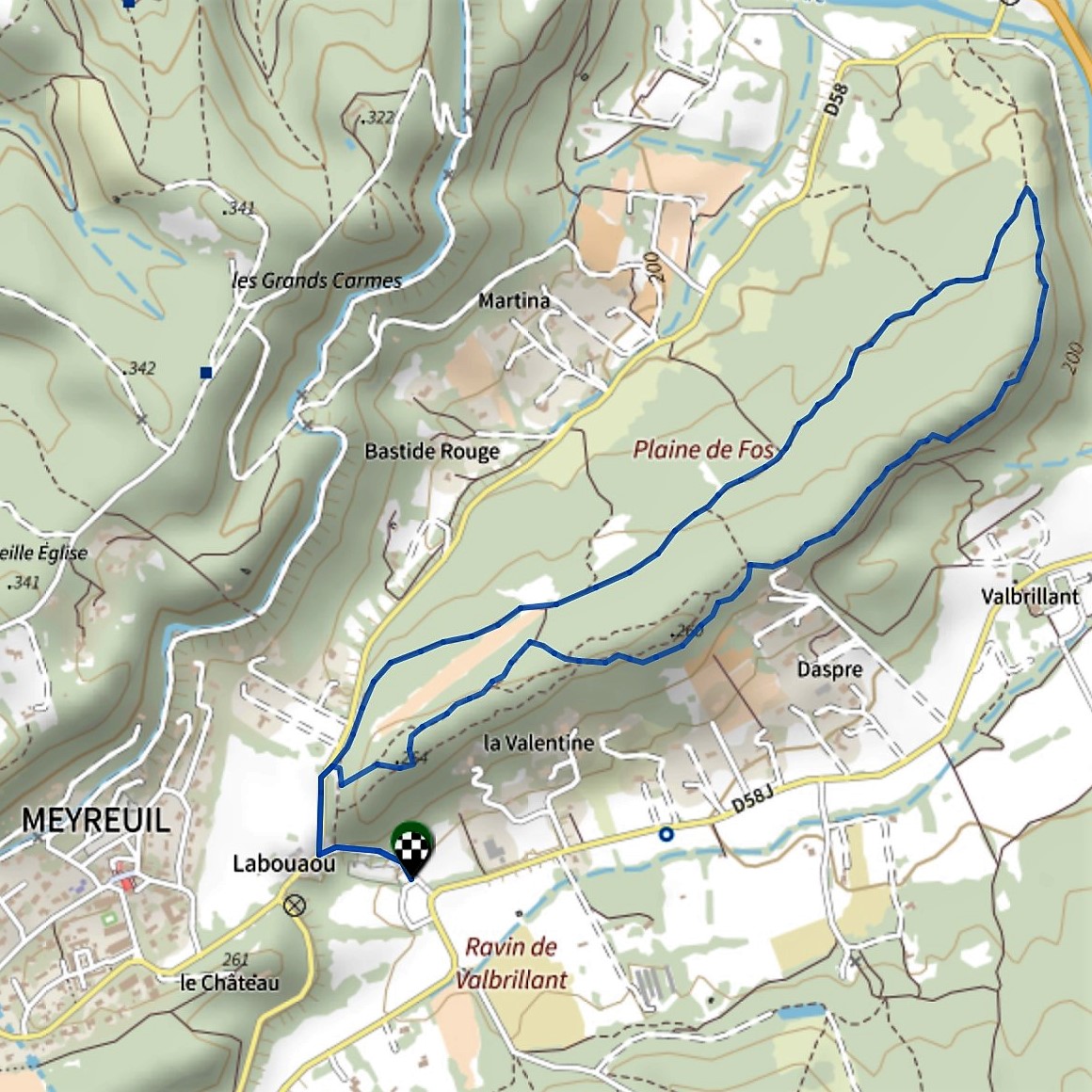 Le stationnement se fait sur le parking Valbrillant dit parking du cimetière (Meyreuil) de coordonnées GPS: 43.486490, 5.5012087.